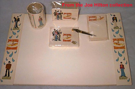 An extremely scarce complete 1968 Yellow Submarine Desk set, never before documented in any book, shown here for the first time. Manufactured by A&M Leatherline, this set is among the rarest of all Yellow Submarine items.