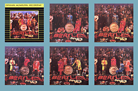 | The "Original Monaural Recording" Sgt. Pepper CD cover, and 5 outtake photos included in the supplied fold-out mini poster. This bootleg pressing ("Parlophone CDM 7 46442") also came with a "Sgt. Pepper lighter," shown below, and a Sgt. Pepper cover decal. |
