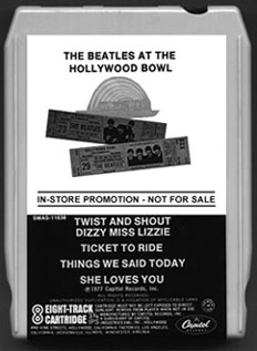 In 1977 Capitol Records issued this 8-track promotional tape for the Hollywood Bowl album (SMAS-11638). The In-Store Promotion tape featured 5 songs from the album, and is the only promotional 8-track ever issued of Beatles material. No