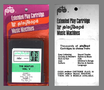 Because of its length, the "white album" was divided into 5 different volumes when released in this format. Playtapes were a flop and lasted less than 2 years, disappearing from the market in early 1969. Today most Beatles versions of these tapes are somewhat difficult to find, especially sealed. The portable Playtape Music Machines are even harder to find, as most were discarded in the late sixties and early seventies.