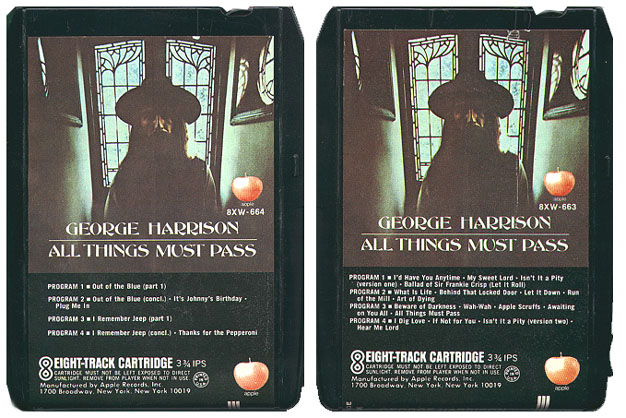 | 8XWB-639 | All Things Must Pass | Apple | Black Shell Two tape set individually numbered 8XW-663 and 8XW-664 Issued with outer title/photo box |