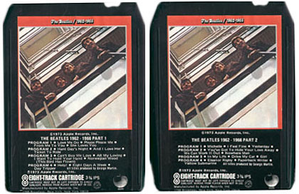 | 8XKB-3403 | The Beatles 1962-1966 | Apple | Black shell, double tape set (Contains 2 cartridgesindividually numbered "8XK-3405" and "8XK-3406") | 1973 | ||