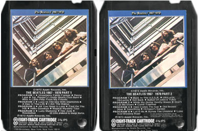 | 8XKB-3404 | The Beatles 1967-1970 | Apple | Black shell, double tape set (contains 2 cartridgesindividually numbered "8XK-3407" and "8XK-3408") | 1973 | ||