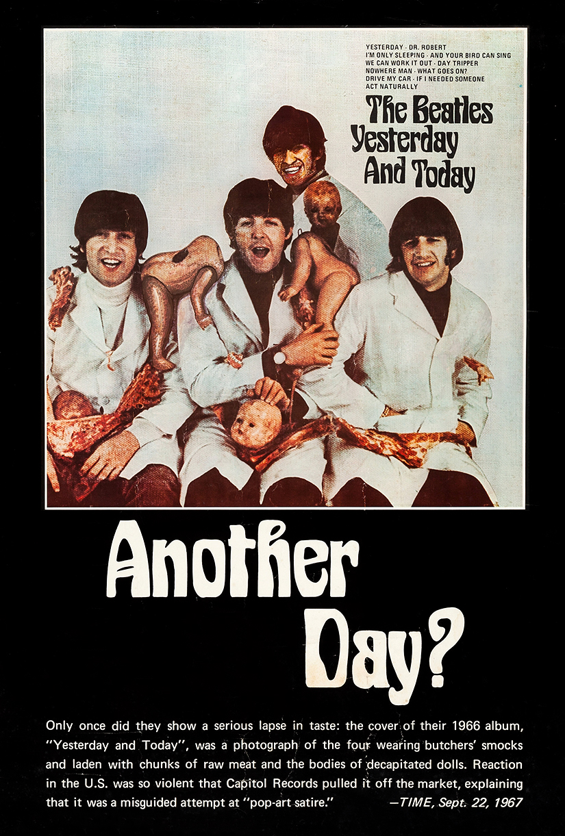 Second printed publication of the Butcher cover photo (full-page EMI ad, same ad as in NME above) |
