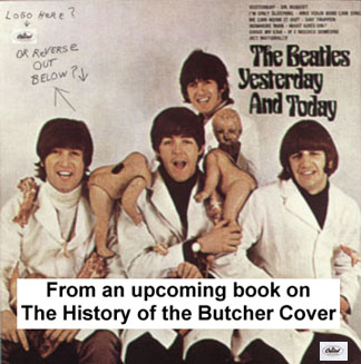 Cover story, first publicly printed photo showing a sealed first state Butcher cover album |