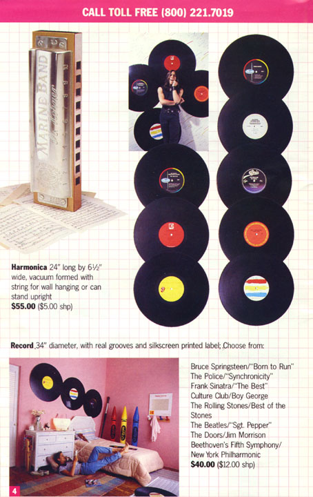This Sgt. Pepper 34" diameter "record" was manufactured in 1984 by a company called Think Big, who published a catalog consisting entirely of oversized products such as pencils, paper clips, sunglasses, hats, stamps, and other items. Eight different 34" records were offered, including titles by Bruce Springsteen, The Police, The Rolling Stones, The Doors, and Frank Sinatra. Complete with "grooves", the vinyl discs featured 11" paper labels and originally sold for $40.00 each plus $12.00 shipping.