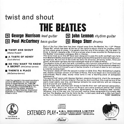 ![]() | Twist and Shout | CD-15854 | Twist and Shout / A Taste of Honey Do You Want To Know A Secret / There's A Place |