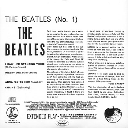 ![]() | The Beatles (No.1) | CD-15855 | I Saw Her Standing There / Misery Anna (Go To Him) / Chains |