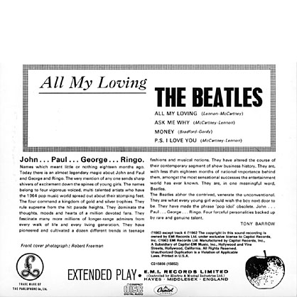 ![]() | All My Loving | CD-15856 | All My Loving / Ask Me Why Money / P.S. I Love You |