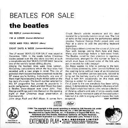 ![]() | Beatles For Sale | CD-15860 | No Reply / I'm A Loser Rock and Roll Music / Eight Days A Week |