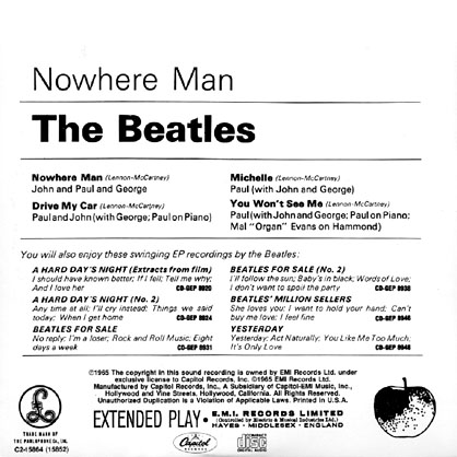 ![]() | Nowhere Man | CD-15864 | Nowhere Man / Drive My Car Michelle / You Won't See Me |