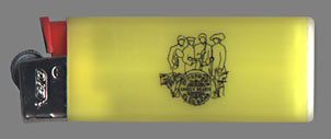| The "Original Monaural Recording" Sgt. Pepper CD cover, and 5 outtake photos included in the supplied fold-out mini poster. This bootleg pressing ("Parlophone CDM 7 46442") also came with a "Sgt. Pepper lighter," shown below, and a Sgt. Pepper cover decal. |