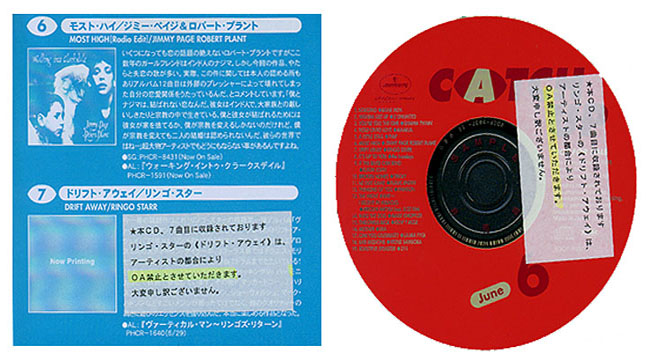 Mercury ME 8DCP-9037 | Catch Up | JAPAN. Radio station sampler CD. (Steven Taylor version of Drift Away. Since this was pressed just before the change to the Tom Petty version, Mercury had to add stickers to the CD and liner notes that stated "Do not play this tune!". This CD is the June 1998 issue of a monthly promotional series issued to radio stations) |