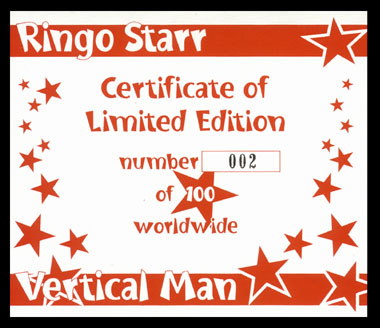 314 558 400-2 5 | Vertical Man | Stock issue, digipak (100,000 pressed, tri-fold die-cut cover with slip-out booklet. A sticker on the front designates it as a "Limited Edition Deluxe Package". The inside of the tri-fold features a 15" x 5-1/2" photo of Ringo.) |