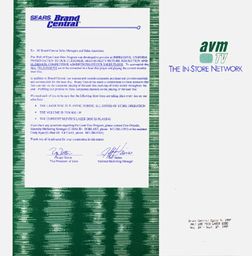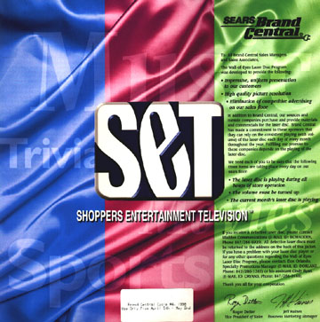 The "Free As A Bird" and "Real Love" videos on CAV laserdisc? No, it's not a prototype of the fan-friendly version of the Anthology home video set rejected by Apple, but some obscure in-store laserdiscs produced for Sears. Issued every month or so, each disc or "cycle" is designed to be played in a Sears store for about four weeks, and then eventually returned for recycling. Video (NTSC) and sound quality throughout the series is excellent, but each disc's program is indexed as one track, making it difficult to access specific sections of the disc. The Sears "Wall-of-Eyes" Laser Disc Program was, as stated on the jackets, "developed to provide an impressive, uniform presentation to our customers, high quality picture resolution and eliminate competitive advertising on our sales floor." Each disc featured ads for Sears-related products, ranging from Kenmore dishwashers to H&R Block tax services, mixed in-between movie trailers and music videos from a wide variety of performers. Here is a list of Beatles and solo cuts (Paul only) that appear on nine different custom laser discs issued between 1995 and 1998: 1) CYCLE 1, 1996 CAV (Use dates 12/31/95 - 1/27/96): FREE AS A BIRD "ANTHOLOGY 1" ad There is an odd edit near the end of FAAB which may be a mistake of some sort. After the false ending, just as the camera pans to the man on stage with the ukulele, a few (less than 10) seconds from earlier in the video appear. The footage is of the crowd in front of the Cavern and the boy in Strawberry Fields, but does not affect the audio in any way. Very strange. The commercial here is the same one which was run on television at the time, which concludes with "25 years after the screams died down....it's happening again." 2) CYCLE 2, 1996 CAV (Use dates 1/28/96 - 2/24/96): "ANTHOLOGY" ad "ANTHOLOGY 1" ad This disc opens with approximately five minutes of interviews and clips, done in the style of the Anthology, talking about the project. Not all of this material was used in the finished production. The onscreen text at the end describes A1 as being "out now" and A2 due on 2/27/96. The second ad on the disc is the same one used on Cycle 1 1996 for Anthology 1. 3) CYCLE 3, 1996 CAV (Use dates 2/25/96 - 3/30/96): Anthology "Love" ad (This appears three times on the disc) REAL LOVE (Version 2, more footage of the Beatle wives) This is the version of the "Love" ad with black handwritten lettering on a while background. The text then reads "This message brought to you by the Beatles." "The Beatles. Anthology 2. March 19. Classic tracks. Fresh takes." A medley of A2 songs which mention the word "love" (You've Got to Hide Your Love Away, It's Only Love, I Feel Fine, A Day in the Life, Yesterday, Real Love) provides the musical backing. All three appearances on the disc are identical. 4) CYCLE 4, 1996 CLV (Use dates 3/31/96 - 4/27/96): Anthology "Love" ad (Appears three times, just like Cycle 3.) REAL LOVE (Version 2, more footage of the Beatle wives.) Aside from being placed in a different sequence on the disc, all material on Cycle 4 is identical to that on Cycle 3. From Cycle 4 on, however, the laserdiscs are all in the CLV format. 5) CYCLE 9, 1996 CLV (Use dates 8/25/96 - 9/28/96): YESTERDAY ("Blackpool Night Out") TICKET TO RIDE (From HELP) YESTERDAY is credited to "The Beatles", even though only Macca appears in the shot. Oddly, the clip itself is credited to "The Ed Sullivan Show," even though it's the "Blackpool Night Out" performance which appears in the Anthology home video. TICKET TO RIDE is taken directly from the film "Help", starting with the "Meanwhile..." message and fading as the Beatles head down the hill away from the piano. 6) CYCLE 11, 1996 CLV (Use dates 10/27/96 - 11/23/96): ANTHOLOGY ad One of the best looking individual ads. It starts with the opening scene from the video (drum into a huge logo), followed by an onscreen tag that says "Eight videos. Three double CDs." along with pictures of both packages. The rest of the ad is a montage of music clips from the Anthology, with bits of the following: LOVE ME DO / PLEASE PLEASE ME / FROM ME TO YOU / I FEEL FINE / I WANT TO HOLD YOUR HAND / HELP! / PAPERBACK WRITER / SGT. PEPPER'S LONELY HEARTS CLUB BAND / ALL YOU NEED IS LOVE / I AM THE WALRUS / LADY MADONNA / LET IT BE / THE END and a reprise of the opening title. 7) CYCLE 12, 1996 CLV (Use dates 11/24/96 - 12/28/96): ANTHOLOGY ads (2 different ones - one for the videos, the other for the CDs. Each appears twice.) Another nice looking advertisement to promote A3, which is "out now," with a montage of clips done in the style of the cover. The second clip is for the video series, a montage of quick shots that fade in and out in sync with a heartbeat. This turns into the chord from "A Day In The Life" and closes with a shot of the video box. The A3 clip appears again, this time coupled with the promo used on Cycle 11. 8) CYCLE 2, 1998 CLV (Use dates 2/1/98 - 2/28/98): Paul McCartney - LITTLE WILLOW (From "IN THE WORLD TONIGHT") Seems to be taken directly from the commercial video. 9) CYCLE 5, 1998 CLV (Use dates 5/3/98 - 5/30/98): Paul McCartney - BEAUTIFUL NIGHT (From "IN THE WORLD TONIGHT") Also seems to be taken directly from the commercial video. The 1996 discs were produced by a company called AVM-TV (Adventure Media, Inc., "The In-Store Network") and run about 30 minutes each. The earlier ones are in CAV ("standard play"), but by Cycle 4 1996 had gone to CLV ("extended play"). The older AVM-TV discs have a white sleeve with a wide green stripe down one side of the front. Currently, the discs are produced by a company called PRN (Pics Retail Networks) and run about 60 minutes each. These are packaged in a more colorful sleeve with stripes of blue, red and green. The front of these have the SET (Shopper's Entertainment Television) logo. The McCartney videos appear on this series, all of which are CLV. Both series, AVM-TV and PRN, use a generic sleeve for each release, differentiated onl