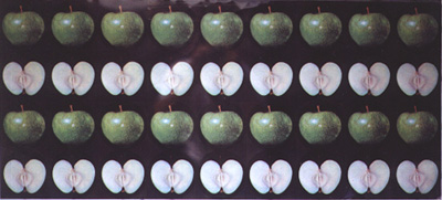 An original uncut printers sheet of thirty-six Beatles Apple album labels, both "A" and "B" sides.