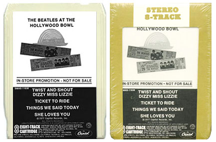 In 1977 Capitol Records issued this 8-track promotional tape for the Hollywood Bowl album (SMAS-11638). The In-Store Promotion tape featured 5 songs from the album, and is the only promotional 8-track ever issued of Beatles material. No