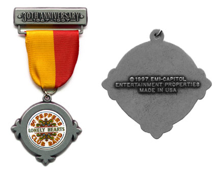 This is a promotional medal issued by EMI - Capitol Entertainment Properties in 1997 to promote the 30th Anniversary of the Beatles' Sgt. Pepper's Lonely Hearts Club Band album. A small quantity were manufactured and have been selling on the collectors market for around $125.00.