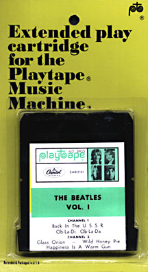 Because of its length, the "white album" was divided into 5 different volumes when released in this format. Playtapes were a flop and lasted less than 2 years, disappearing from the market in early 1969. Today most Beatles versions of these tapes are somewhat difficult to find, especially sealed. The portable Playtape Music Machines are even harder to find, as most were discarded in the late sixties and early seventies.