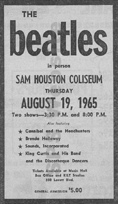 Newspaper ad and Houston press conference admission ticket. Click on either for enlargement.