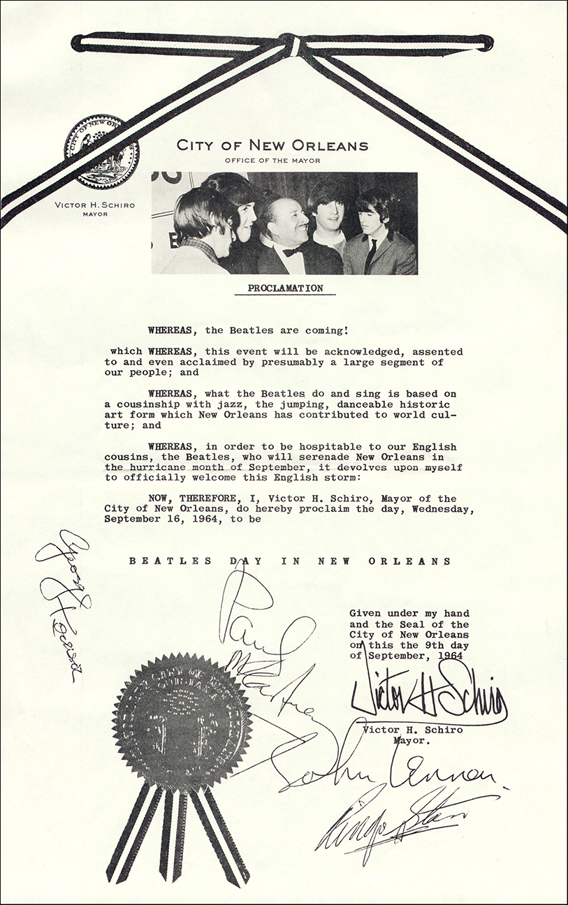 "Beatles Day in New Orleans" proclamation from the Mayor. Click to enlarge.