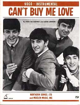 The Beatles' single Can't Buy Me Love / You Can't Do That (Capitol 5150) was released on March 16, 1964. Its picture sleeve is considered the rarest of all the Capitol sleeves and near mint copies have sold for more than $1,000.00. Twelve variations and reissues exist of the disc. The originals were issued on the orange/yellow swirl label and do not have the words "Subsidiary of..." in the perimeter print.
