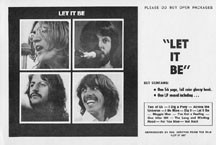 | Scarce German Let It Be box set. It was originally believed that they were not released there, but the question of their existence was proven when, in the 1970s, three flat unused outside covers were discovered. As well, complete sets have surfaced in the 1990s. The cover and back credit line is shown above. The "line" near the bottom of the cover is the fold line for the box. |