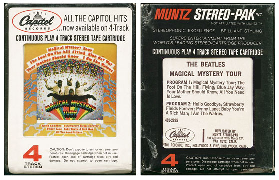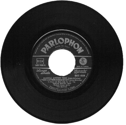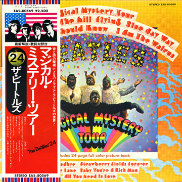 | The Magical Mystery Tour double EP set was originally issued in the U.K. in both MONO and STEREO versions, and soon after in Japan, Italy and several other countries, the majority in STEREO versions only. Shown above is the original U.K. MONO issue, of which far less were pressed than stereo versions. At least three countries, Australia, France and Japan, issued EP releases designated as "mono", but were in fact just mono mixes from the stereo masters!