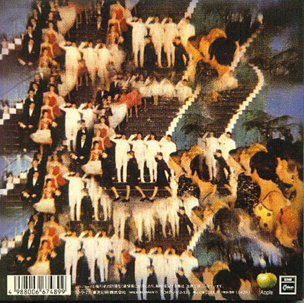 The six tracks included were Magical Mystery Tour, Your Mother Should Know, and I Am The Walrus on disc 1, and The Fool On The Hill, Flying, and Blue Jay Way on disc 2. The jacket was a near-identical miniature of the full size LP, including the entire 28 page booklet with lyrics (listed incorrectly in many places as "32 pages" - which there would be if you count the covers as four). The EPs fit in pockets on each inside cover. The rarest copies are the versions from Japan that were issued on red vinyl (Odeon OP-4335-6, released 3-10-68), followed by any of the mono versions. Stereo copies were reissued in the UK during the 1970s and these are still fairly common. In 1997 Japan reissued the EP set in mono as part of a 30th anniversary promotion. |