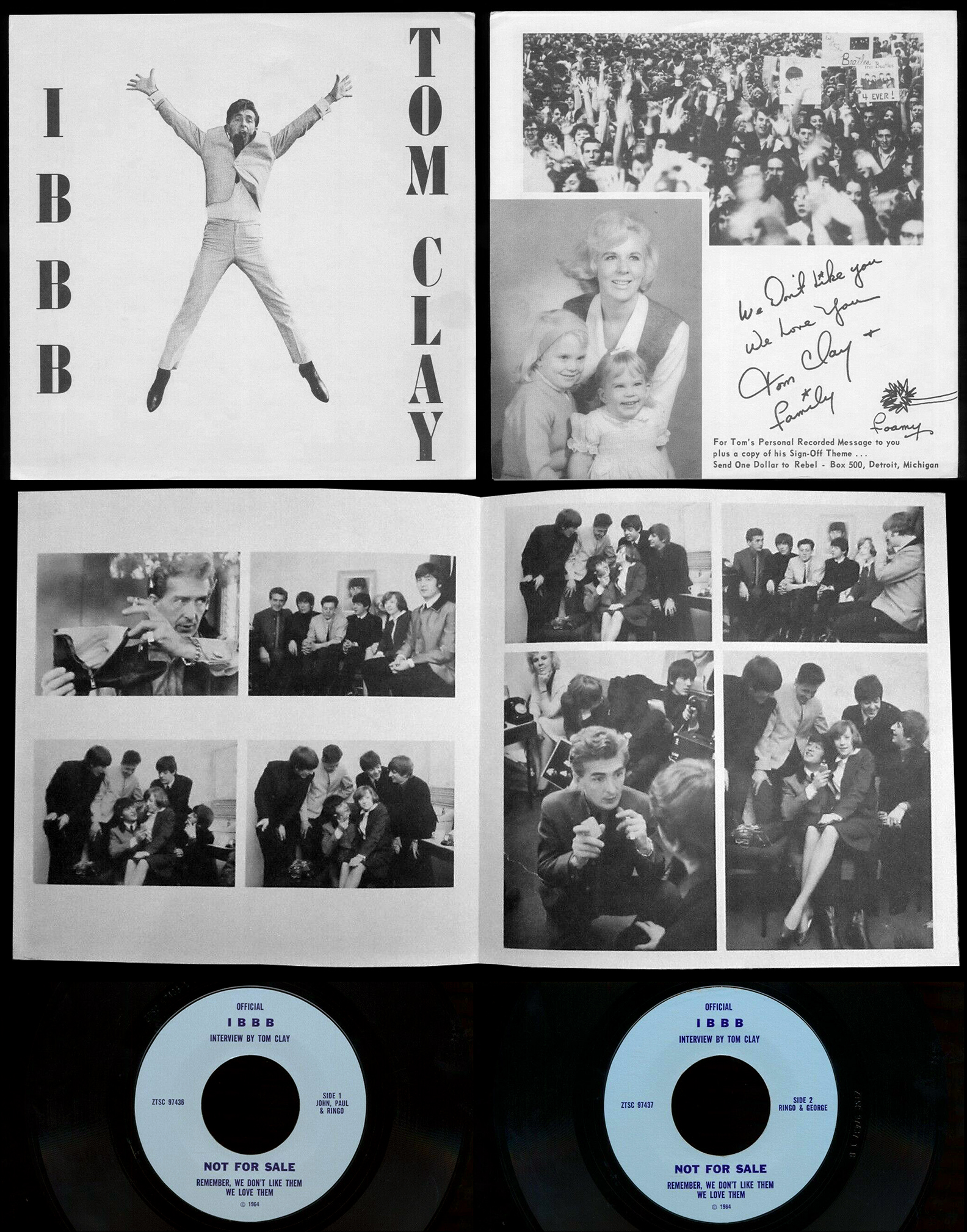 | IBBB | ZTSC 97436/37 | IBBB Interview by Tom Clay "Remember, We Don't Like Them, We Love Them". Interview by former disc jockey Tom Clay on the set of A Hard Day's Night. This promotional 45 with a fold-open insert was available via mail order only. | Ringo & George interview | Spring 1964 | $60.00 | |||||||||