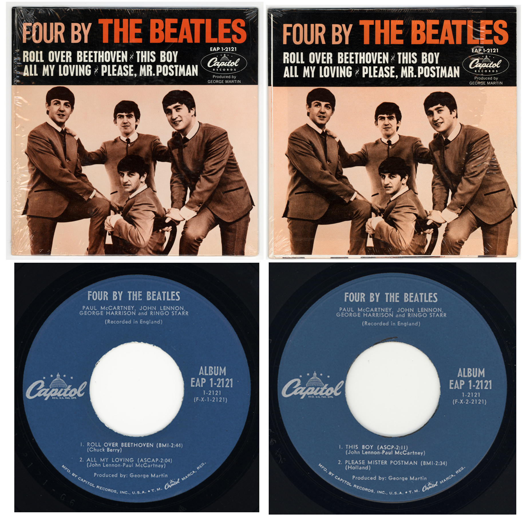 | Capitol | EAP-2121 | Four By The Beatles (The first of only two commercially released Beatles EP's issued by Capitol) | 05-11-64 | $500.00 | |