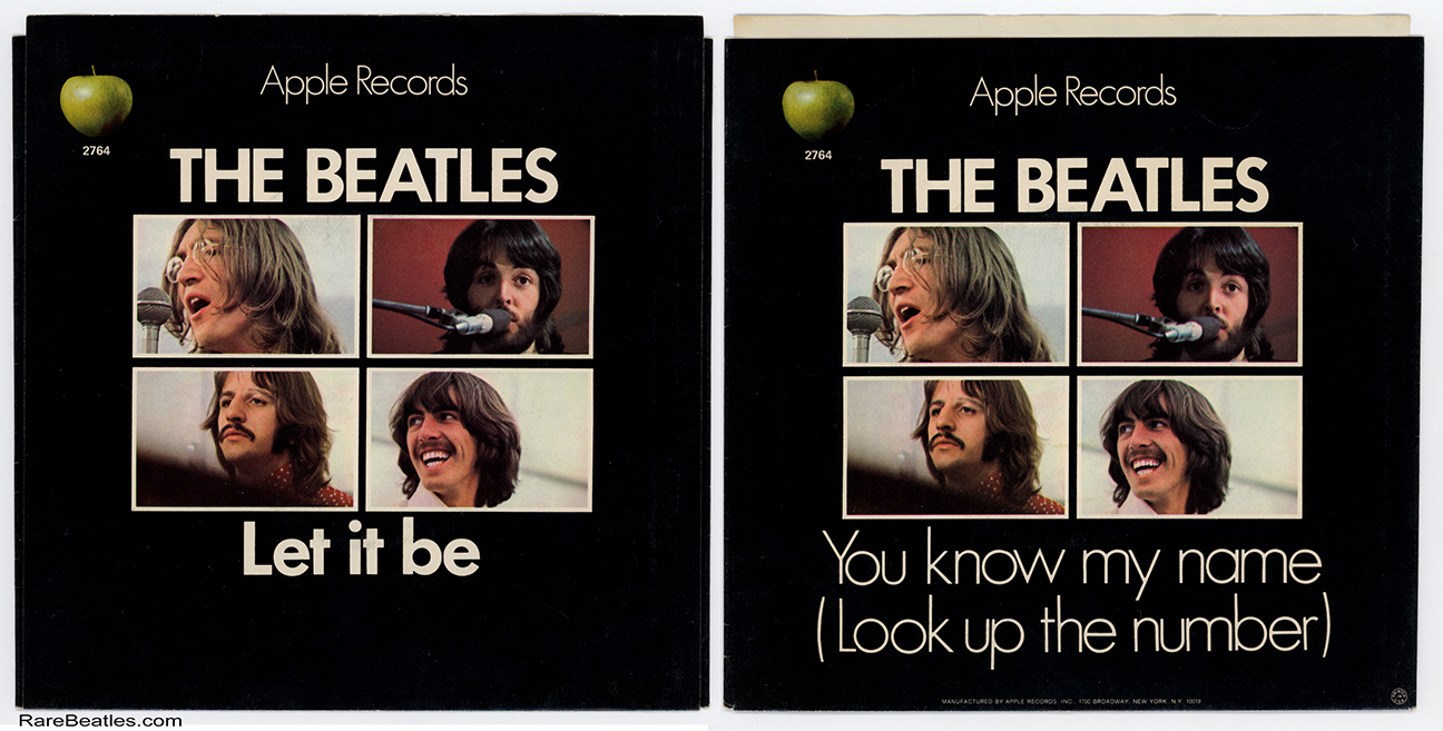 | Apple | 2764 | Let It Be (Can be found in either the usual East Coast straight-cut version or in a rounded top version. It is believed that the rounded top version was also manufactured on the East Coast by Queens Litho, most likely during the later part of the production run) | You Know My Name | 03-11-70 |