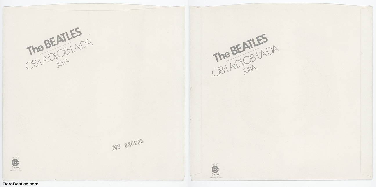 | Capitol | 4347 | Ob-La-Di, Ob-La-Da (Pressed at Capitol Records Winchester Pressing Plant) | Julia | 11-18-76 | $8.00 | |||||||||