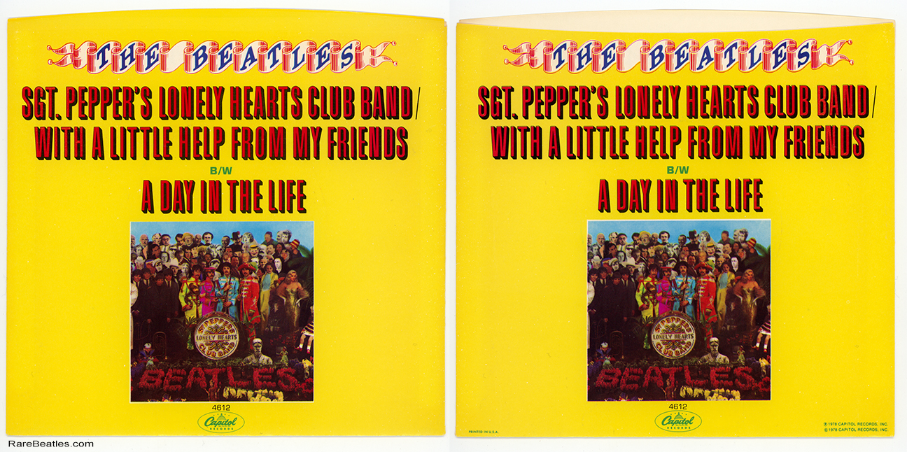 | Capitol | 4612 | Sgt. Pepper's Lonely Hearts Club Band | With A Little Help From My Friends | 08-14-78 | $12.00 | |||||||||