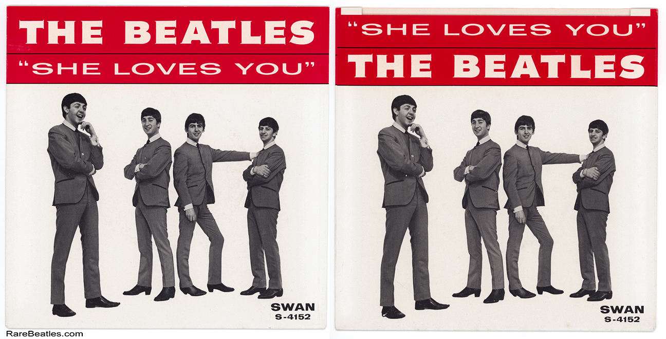 | Swan | 4152 | She Loves You (Although the single was originally released in September 1963, picture sleeves did not appear until the black label reissue in January 1964) | I'll Get You | 09-16-63 | $350.00 | |||||||||