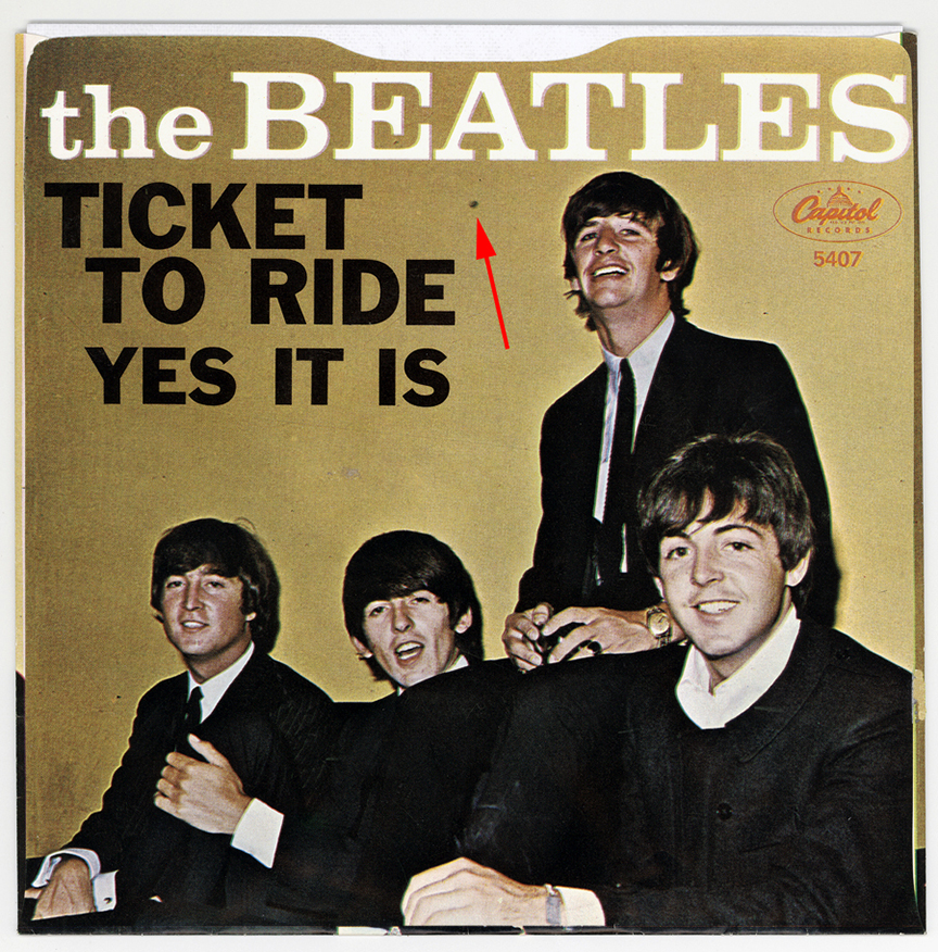 | Capitol | 5407 | Ticket To Ride (Print defect: all West Coast copies have a small black dot below the 'A' in 'Beatles' on both sides of the sleeve. The East Coast release has "Printed In USA" on one side) | Yes It Is | 04-19-65 |