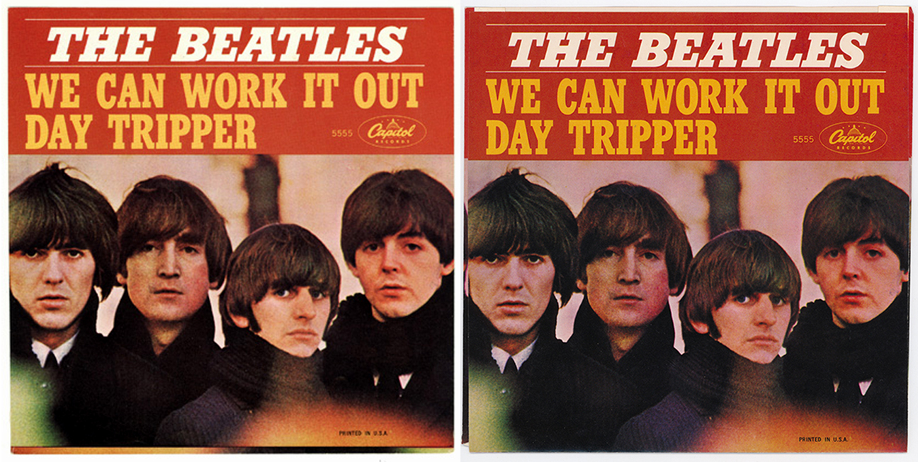 Usually one side of the country or the other would provide the original artwork for the picture sleeves. The other side would then receive a 2nd generation print or negative of the artwork with which to construct their sleeves. This resulted in sometimes drastic photo quality/resolution differences among sleeves of the same release. Here a a few of the extreme examples: