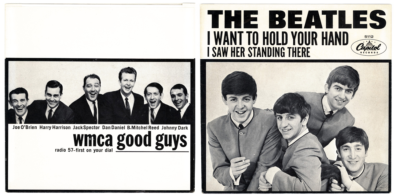 | Capitol | 5112 | I Want To Hold Your Hand (Custom promotional-only picture sleeve, issued with commercial copies of the single in 1964. Only 1,000 of these picture sleeves were printed. The front of the sleeve is the same as the standard Capitol 5112 issue, while the back features a picture of the six New York radio station WMCA "Good Guys". These were given away to listeners in a station-sponsored Beatles wig contest. This sleeve is one of the scarcest and most sought after of all Beatles pictures sleeves). | I Saw Her Standing There | 1964 | $7,500.00 | |||||||||