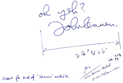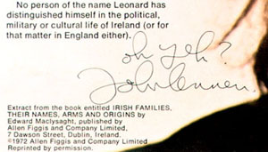 | 21. | LISTEN TO THIS SONGBOOK | Songbook, 64 pages, 9" x 12", standard photo of John with black borders on cover. Lennon Music Publishing, 1974. |