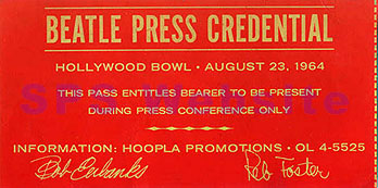 | Feb. 08, 1998 | Added a scan of a very rare Beatles Press Credential to our Hollywood Bowl page. | |