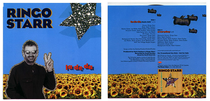 | June 18, 1998 | Here's a scan of the hard-to-find promotional CD single, La De Da, from Ringo's new Vertical Man album... Best Buy Stores included a free promotional 3-track CD titled Vertical Man Bonus Music (Mercury MECP 424) with purchase of the standard release. A promotional 7" vinyl release was also issued and included the songs La De Da and Everyday. | |