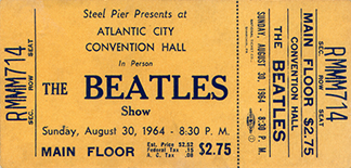 | Feb. 25, 1998 | Added a peach colored ticket for Atlantic City 1964 to our Beatles Concert Tickets section. | |
