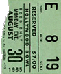 | Oct 16, 1998 | Not too many tickets turn up for the the Hollywood Bowl concerts. Here's a scan of a green stub from the 8/30/65 show. | |