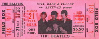 | Feb. 19, 1998 | Added a $5.50 1966 St. Louis lavendar ticket to our Beatles Concert Tickets page. | |