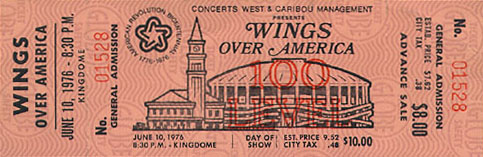 | Feb. 23, 1998 | Here's a nice scan of a full ticket from the Paul McCartney & Wings show at the Seattle Kingdome, June 10, 1976. | |