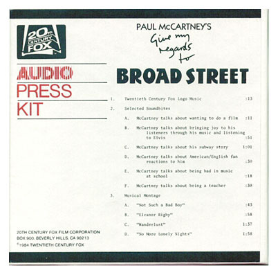 | Aug 12, 1998 | Added information on a very scarce computer game themed for Paul's Give My Regards To Broadstreet movie. | |