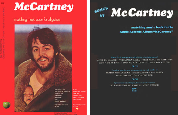 | July 01, 1998 | Added Beatles No. 2, Highlights for Very Easy Piano, and Live At The Hollywood Bowl to the Beatles Songbooks section. Added New Songs of Paul McCartney and Wings Over America to the Solo Songbooks page. Added Apple Scruffs, Dark Horse, Only You, and Sentimental Journey to the Solo Sheet Music page. | |